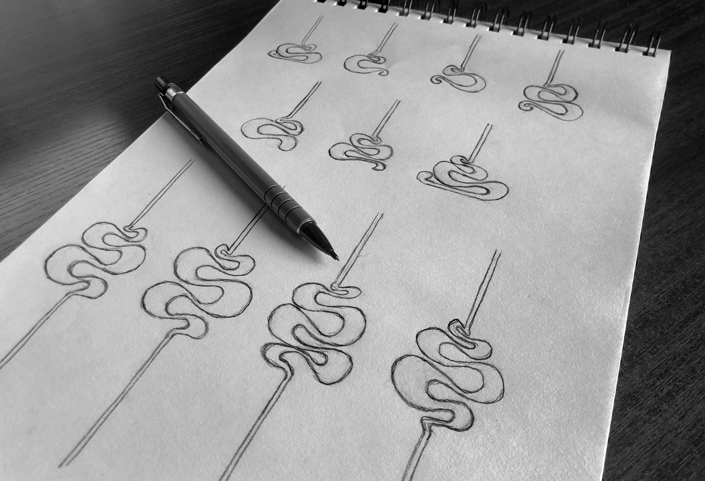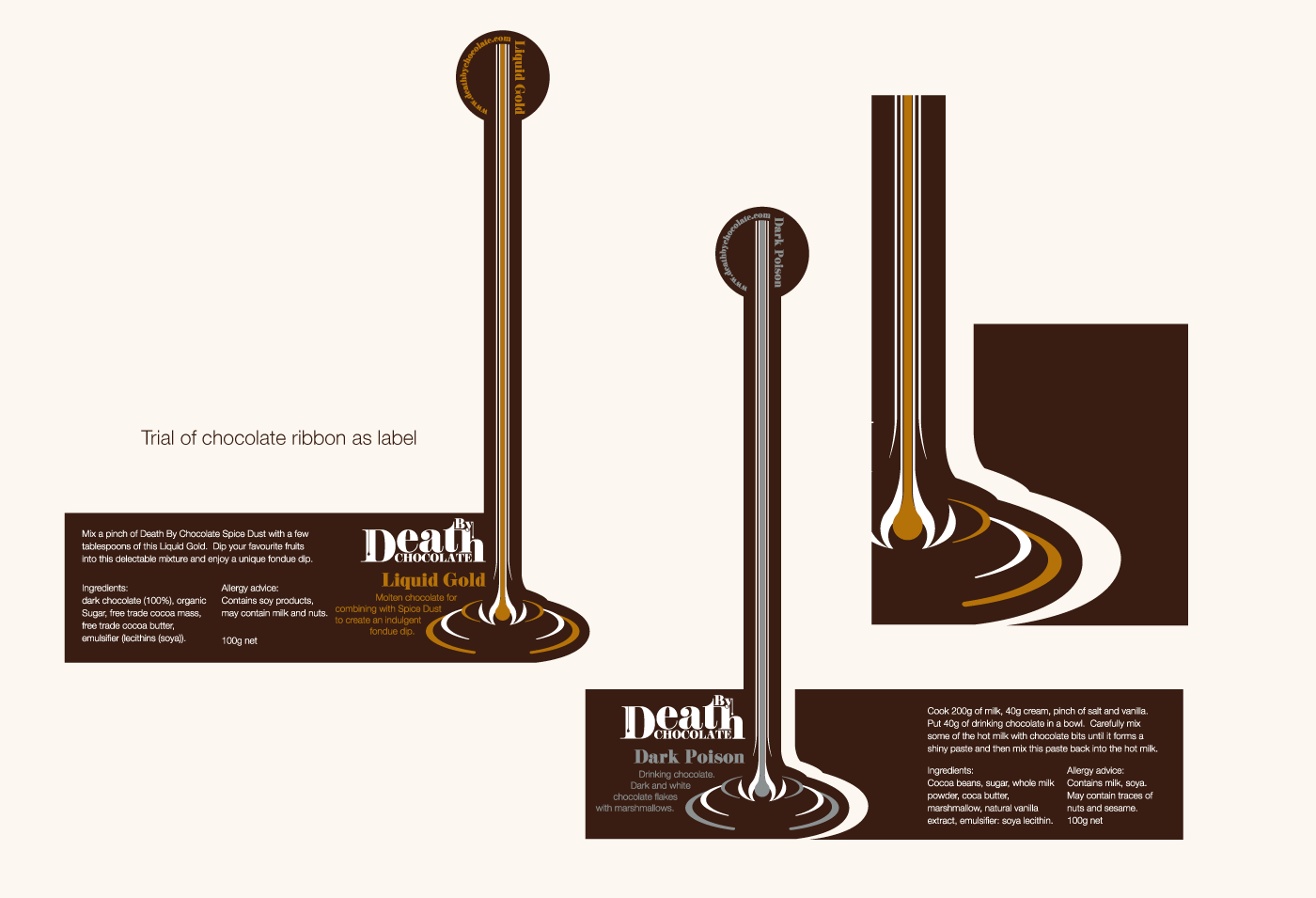 Development of chocolate ribbon, hand-drawn rendered digitally.